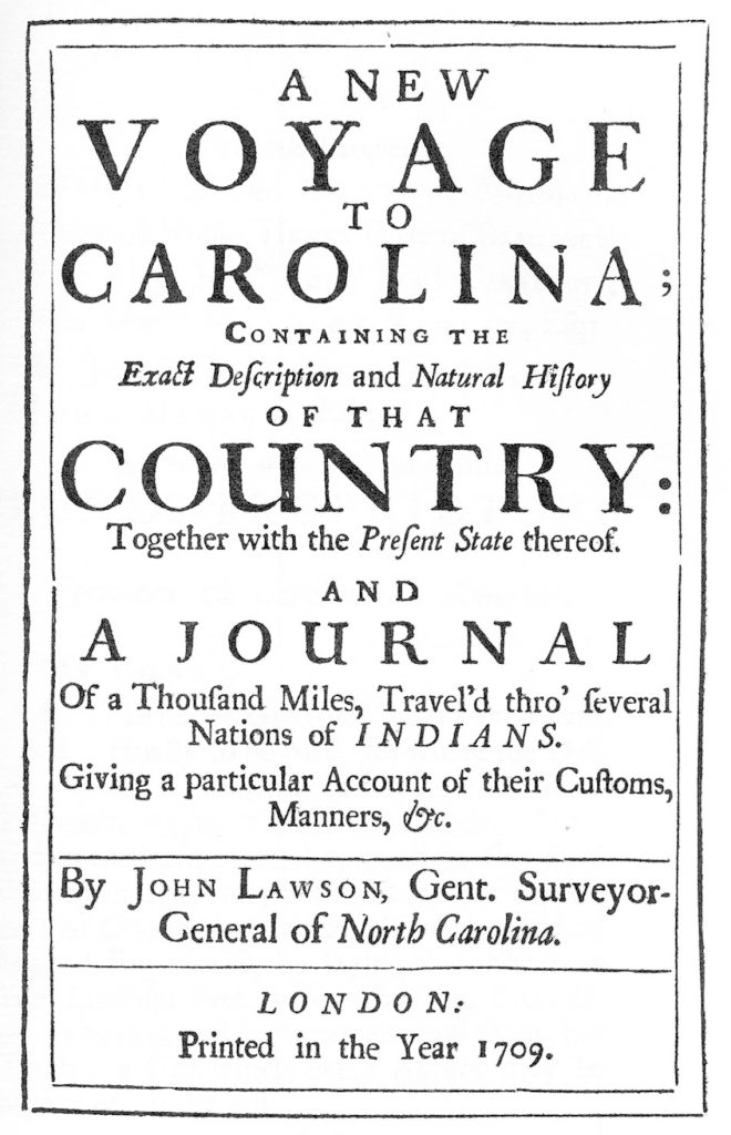 In the rapidly emerging Age of Exploration, Lawson — a son of privilege whose family enjoyed connections to British royalty — was clearly out to make a name for himself, but his intimately detailed and highly readable “history” quickly became a bestseller in England and across Europe at large; translations in French and German soon followed. Today, his backcountry exegesis is still regarded as one of the best travel accounts to appear from the early 18th century American Colonies.