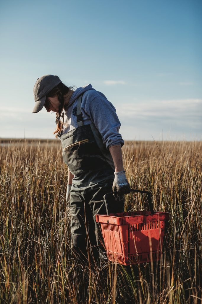 In boots, waders and braids, she forges fearlessly into the tall Spartina grass, taking in textures and subtle differences in soil color and composition to help her find what she seeks. Her mind is completely focused on the here and now. But this act of foraging is ancient, bubbling up from some part of the brain most of us don’t use anymore. In this strange postmodern age of AI and TikTok, she’s guided by the wisdom of generations of hunter-gatherers.